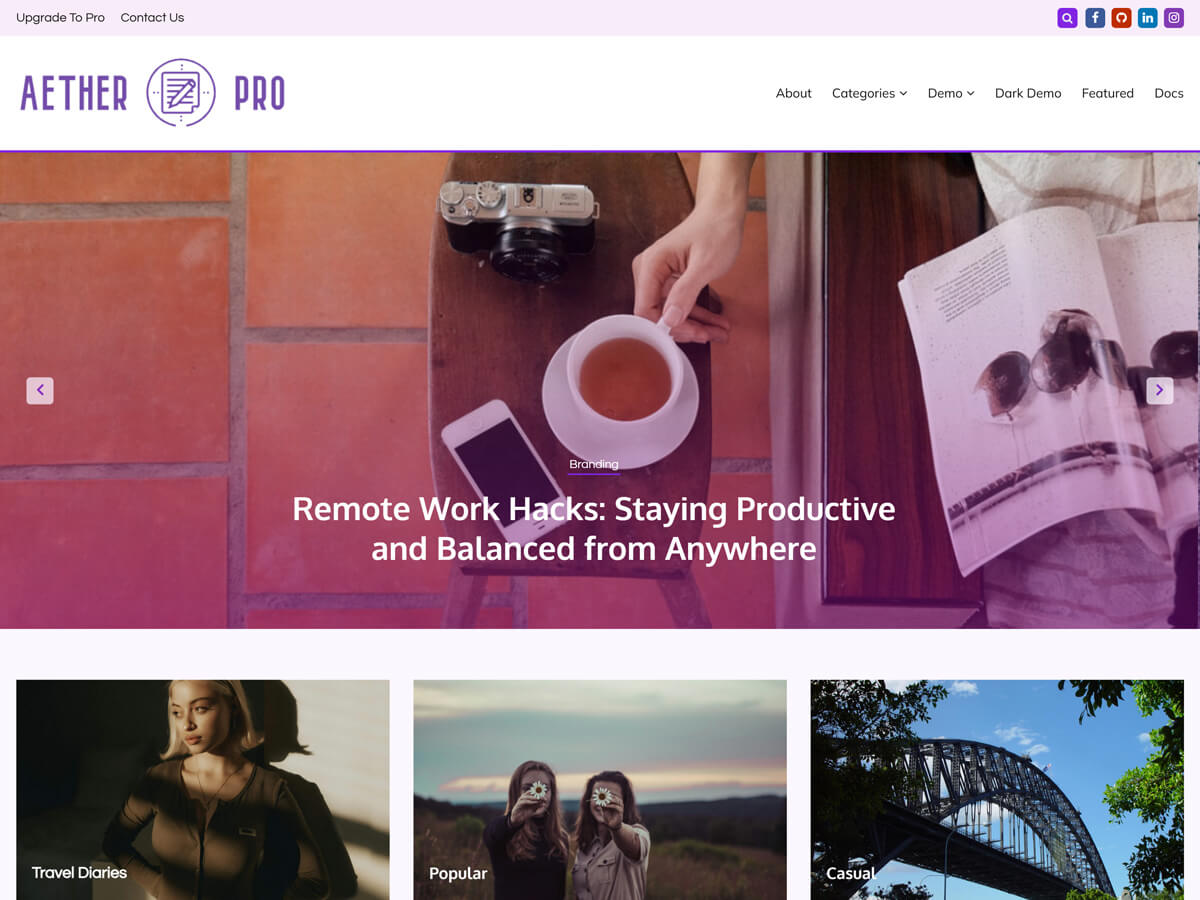 Arther is a premium WordPress blog theme. It is a Gutenberg ready WordPress theme and compatible with all blocks and patterns of WordPress. This theme is developed based on customizer settings. You can see the live changes that you have made in customizer. Arther also comes with added custom widgets for the author, featured posts, and social icons.