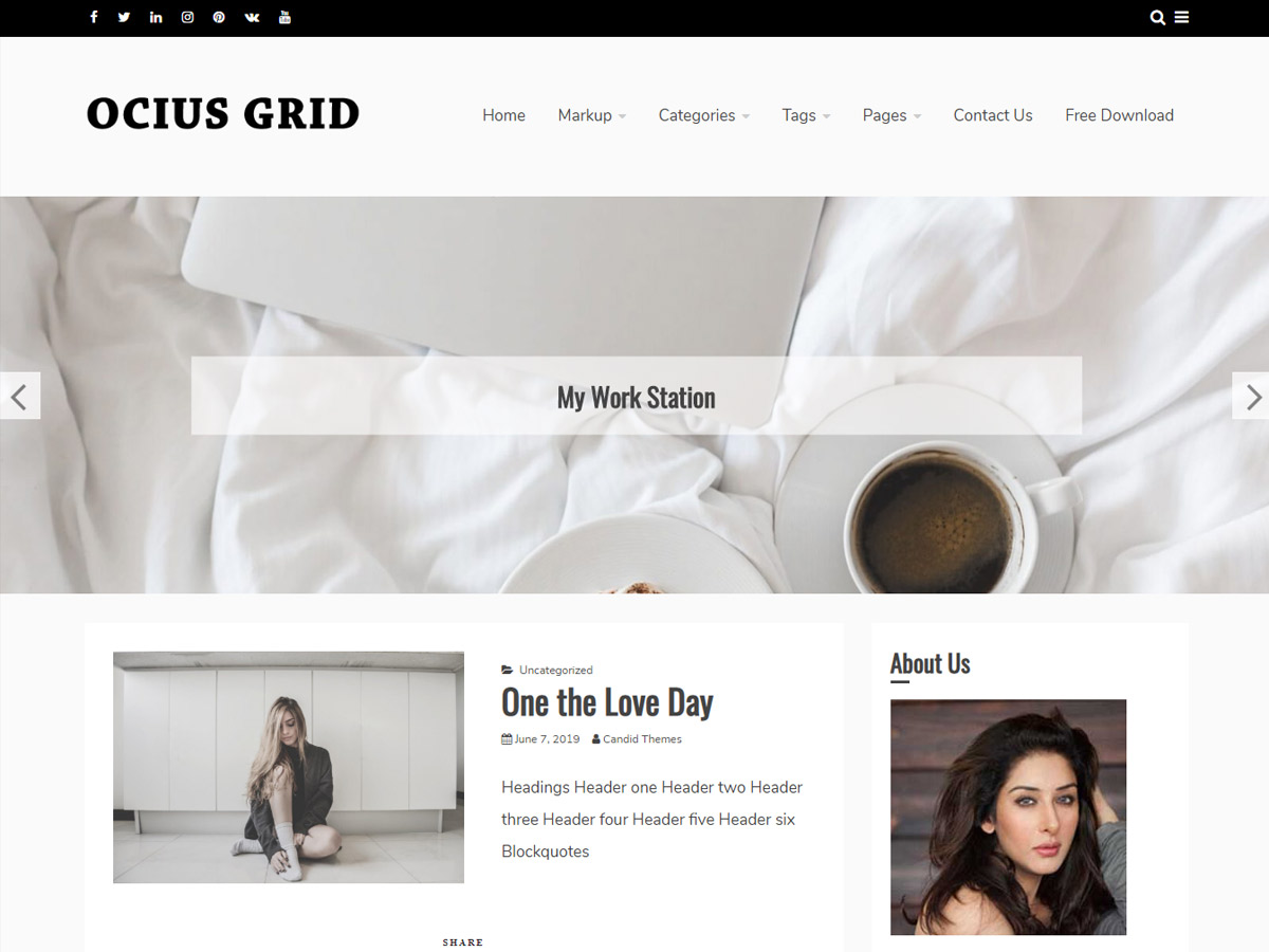 Ocius Grid is the Child Theme of Ocius. This theme is best ever crafted free WordPress theme for Blog, news, and Magazine. It is a simple, easy to use, modern and creative, user-friendly WordPress theme with typography, fonts and color options. In addition, the Ocius Grid is responsive and cross-browser compatible. Ocius Grid comes with added custom widgets for social and author, sticky sidebar options, footer widget, sidebar options, meta option, copyright option, social options, etc. Moreover, it has SEO markup option, site layout option and many more. It comes with dummy data, setup instructions, and video documentation as well.